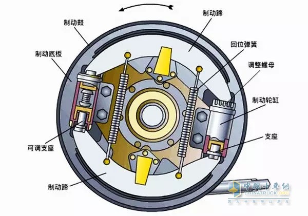 在制動鼓內設置了兩組制動蹄片,在我們踩下制動踏板的時候,駕駛員的力量會傳遞給制動蹄片,頂動兩邊的半圓弧狀U形制動蹄片,使其膨脹向外擠壓,將制動蹄片緊壓在制動鼓上。此時制動鼓與制動蹄片之間會發生強烈的摩擦從而起到制動效果。