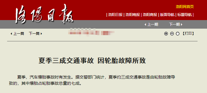 夏季,是交通事故的高發(fā)季。據(jù)交警部門統(tǒng)計,約三成交通事故是由輪胎故障導致的,其中爆胎占輪胎事故總量的七成。