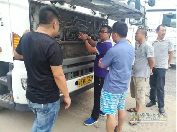 在實操現場,培訓老師對車輛每一個按鈕的使用環境、使用方法進行詳細說明,同時也強調了對車輛出車前檢查的重要性。針對排氣制動及自動巡航的使用,培訓老師進行現場操作演示,并特別囑咐要對發動機的排氣門間隙定期調整,通過實操的講解,學員們普遍都表示受益匪淺。在對車輛進行點檢培訓的時候,廣汽日野團隊還發現,現場一臺行駛里程為88萬公里的車輛車況極佳,正是出于對車輛的了解與定期點檢、維護等,才讓車輛極佳的整體車況一直維持。