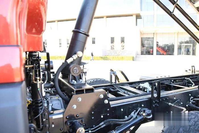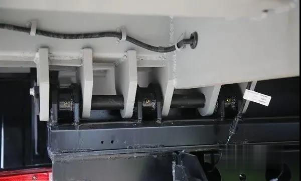 同時根據(jù)使用需求,大金剛ES7三軸國六自卸車貨箱后面的翻轉(zhuǎn)使用的是6底座設(shè)計,相對于4底座更加穩(wěn)定,受力點更多,而且受力面積更大,這樣在后翻卸貨的時候出現(xiàn)側(cè)面的幾率更小。由于貨箱比較長,再加上底盤布局限制,貨箱使用的前置單頂液壓缸,更加安全可靠。