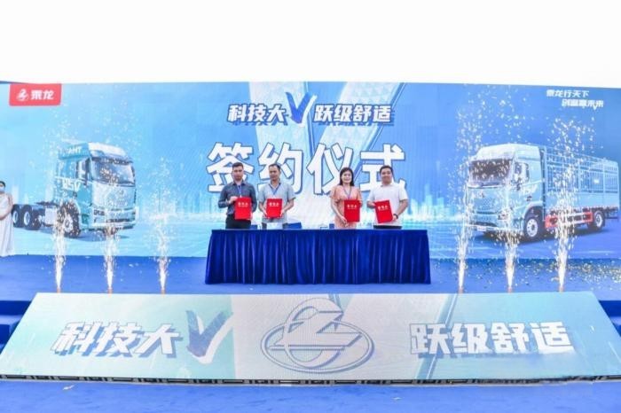 隨后,東風柳汽乘龍與大客戶舉行了批量購車意向簽約,雙方共同開啟了“全新一代智享卡車”新時代。相信此次雙方強強聯合,必將在實現雙方事業互相助力、共促共贏同時,推動現代物流行業高效發展。