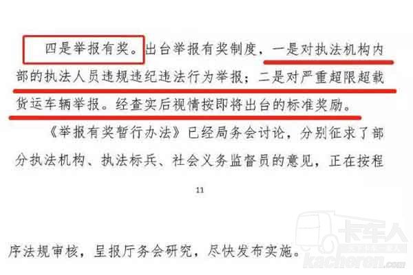 二是對嚴重超載超限貨運車輛舉報。經過查實后視情按即將出臺的標準獎勵。