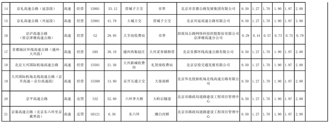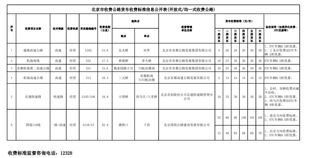 5月3日,北京市交通委員會公布《貨車收費標準公示表》。