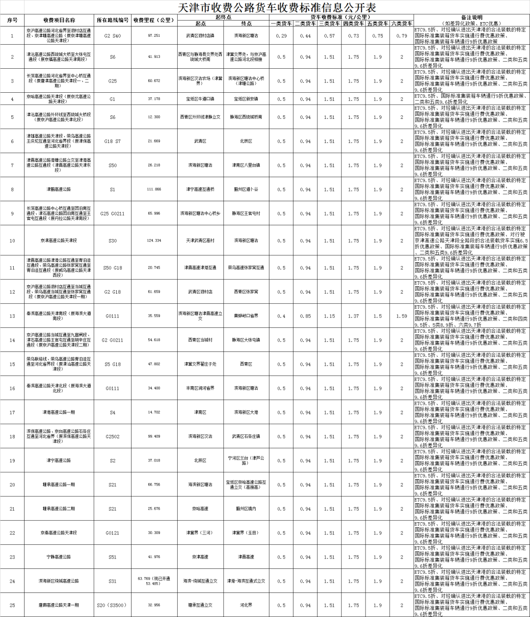 5月2日,天津市交通運輸委員會公布《天津市收費公路貨車收費標準信息公開表》、《天津ETC貨車發行機構及合作機構信息公開表》。
